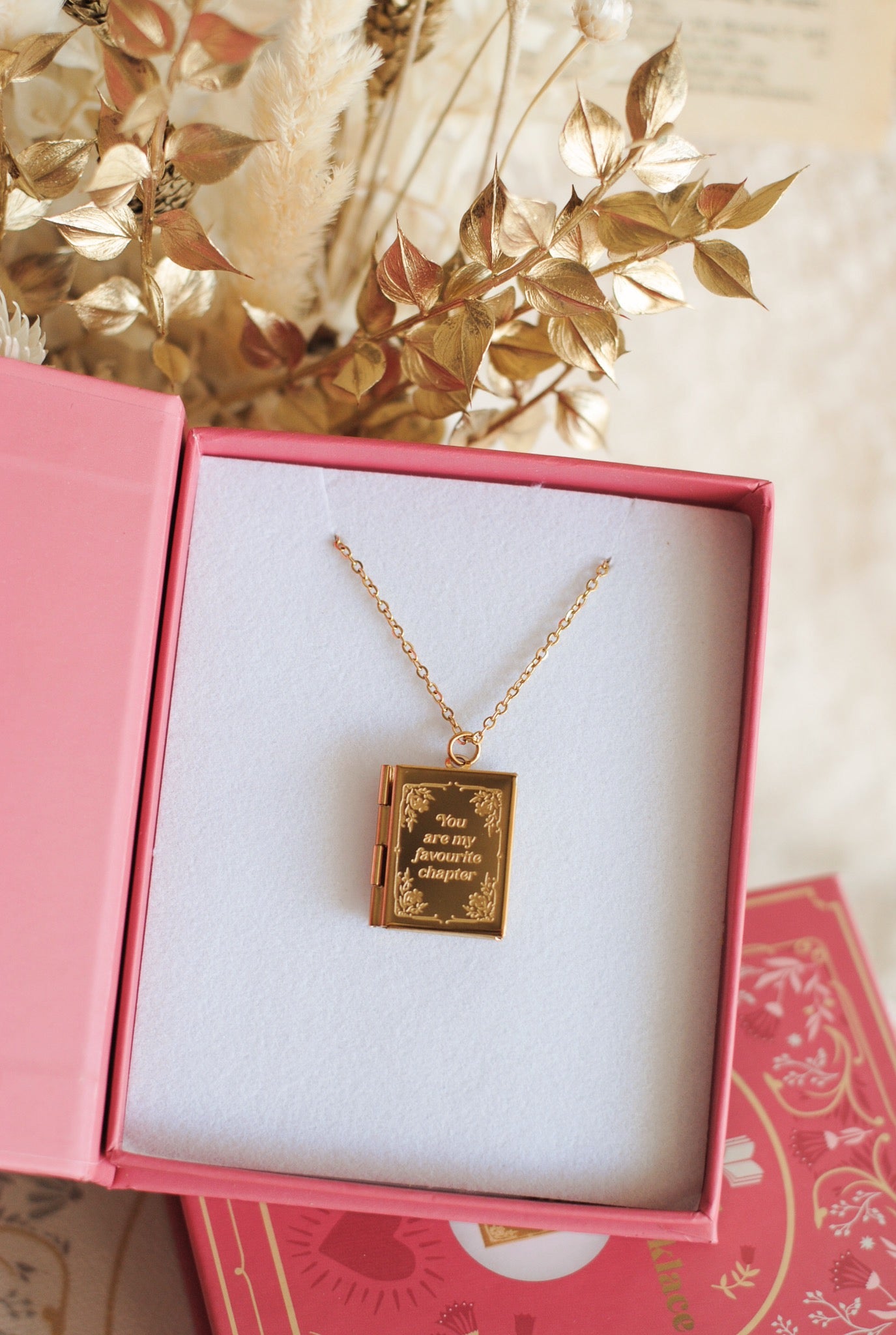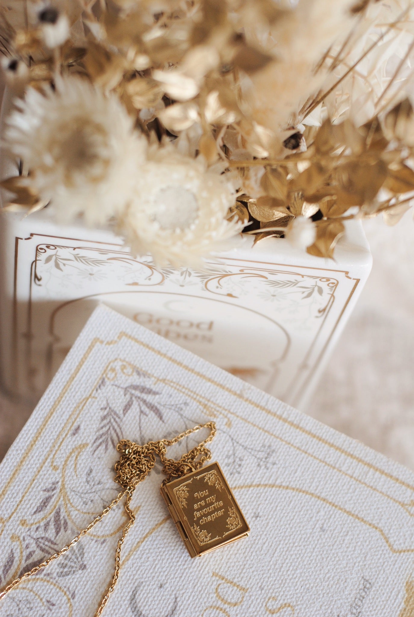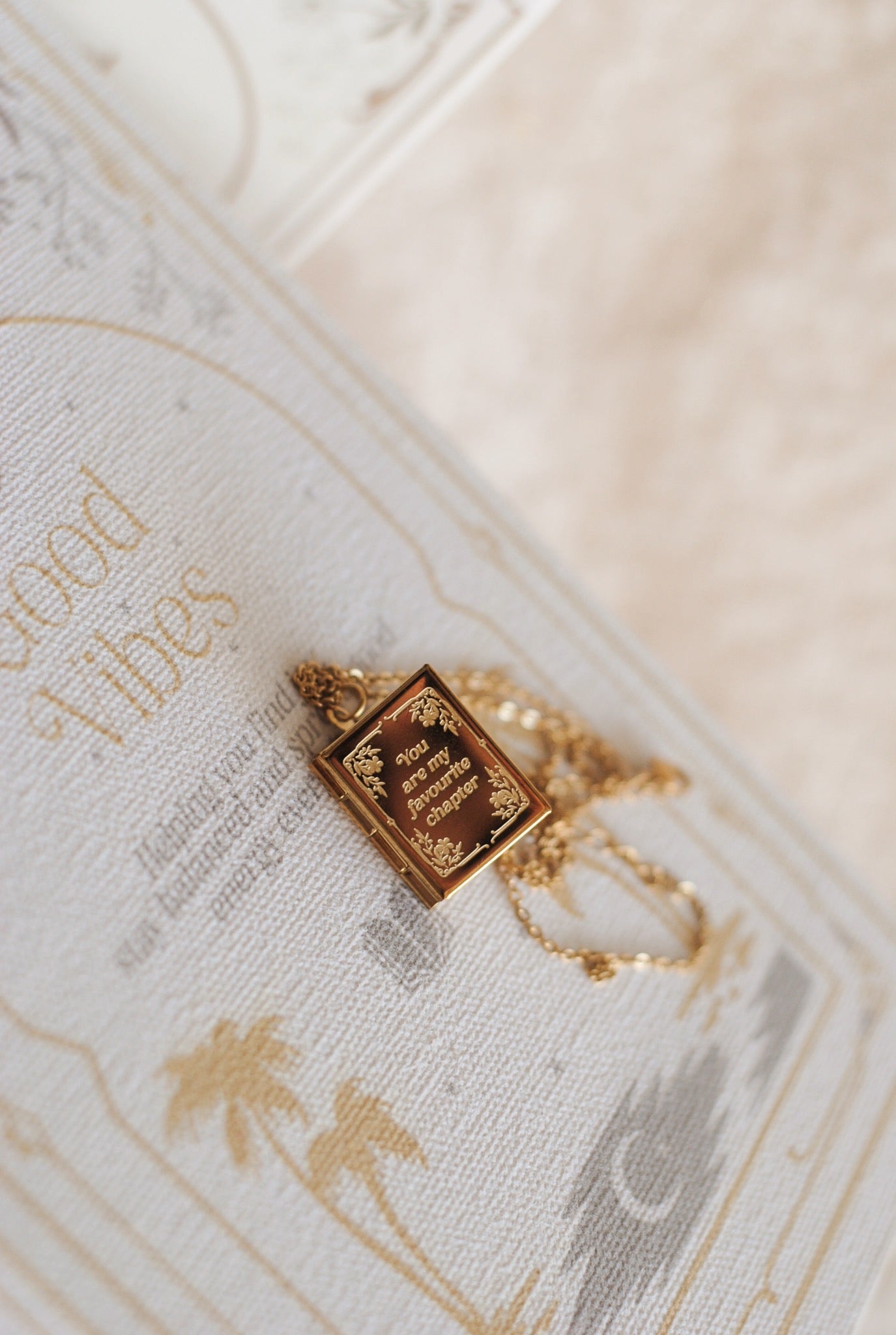 Deze goudkleurige locket opent als een mini-boekje! Met plaats voor twee foto's! Een echte keepsake die je dicht bij je hart draagt. Het boek heeft het opschrift "You are my favorite chapter". ♥️ De ketting komt in een bijpassend geschenkdoosje, een prachtig cadeau! ✨📚