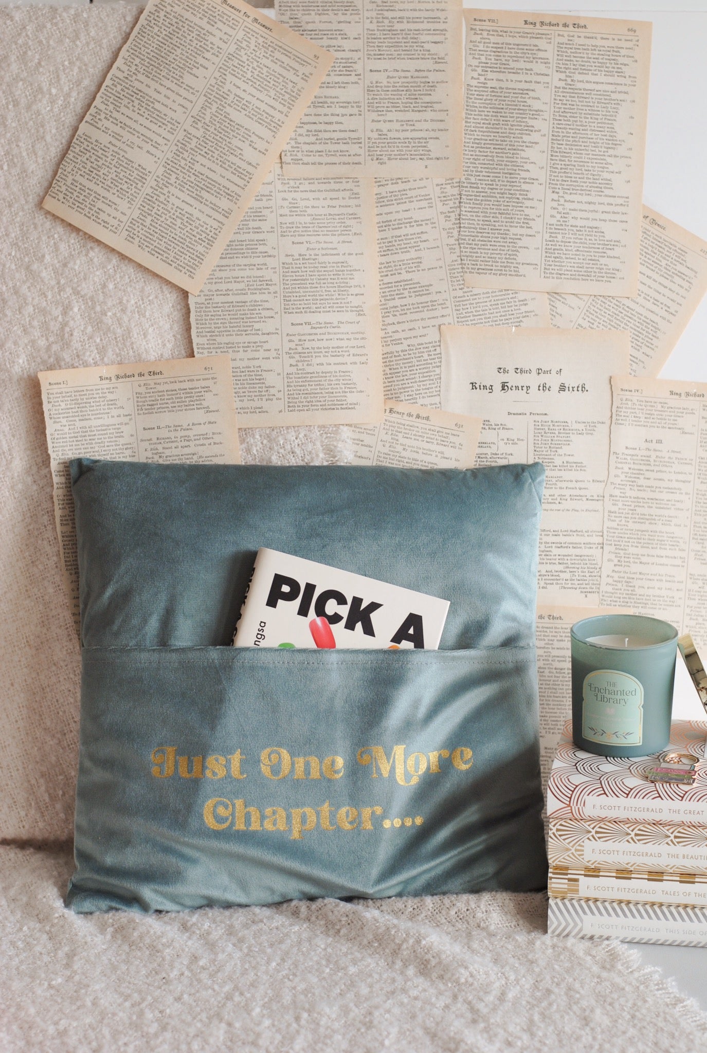 Book Lover Cushion with Book Pocket