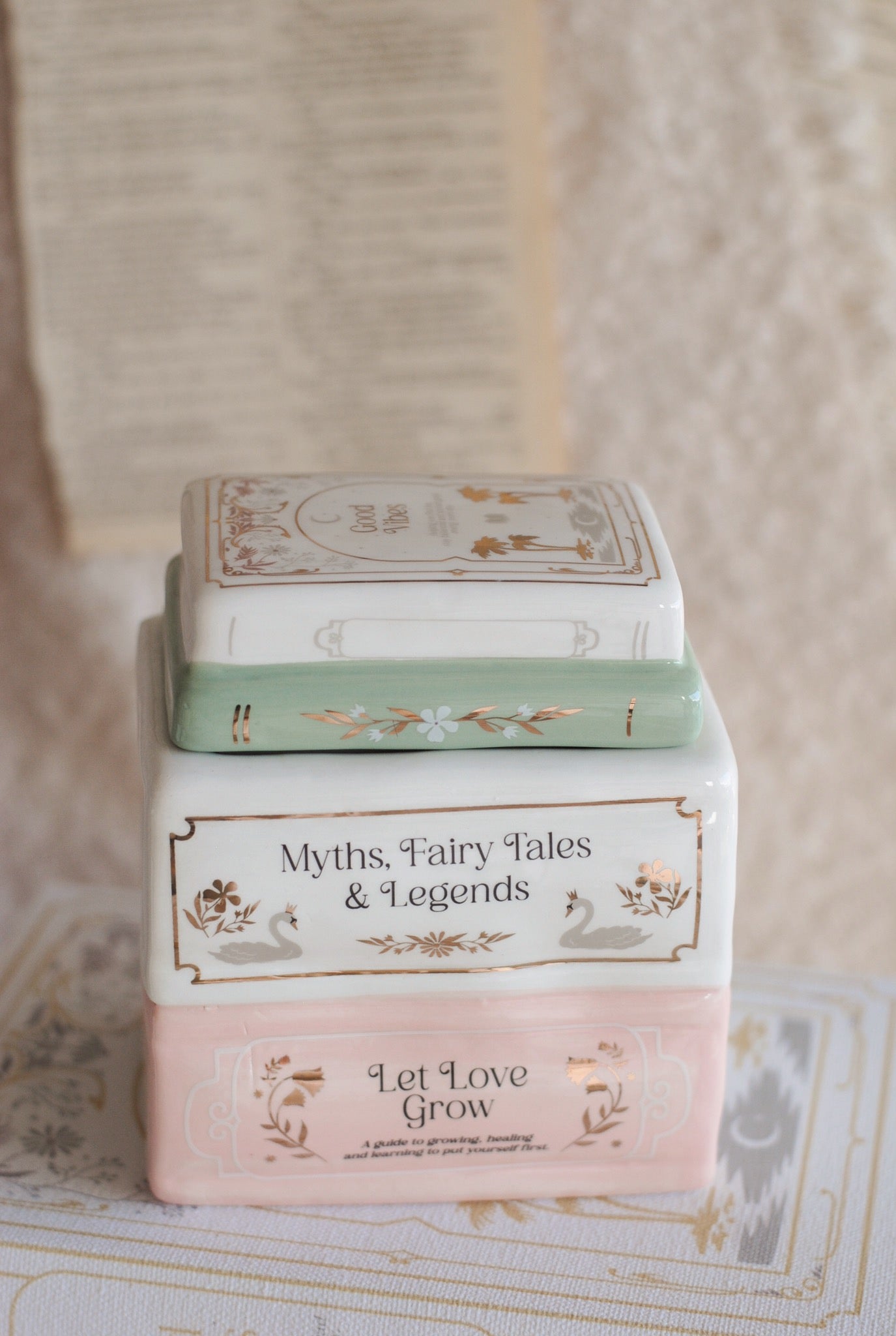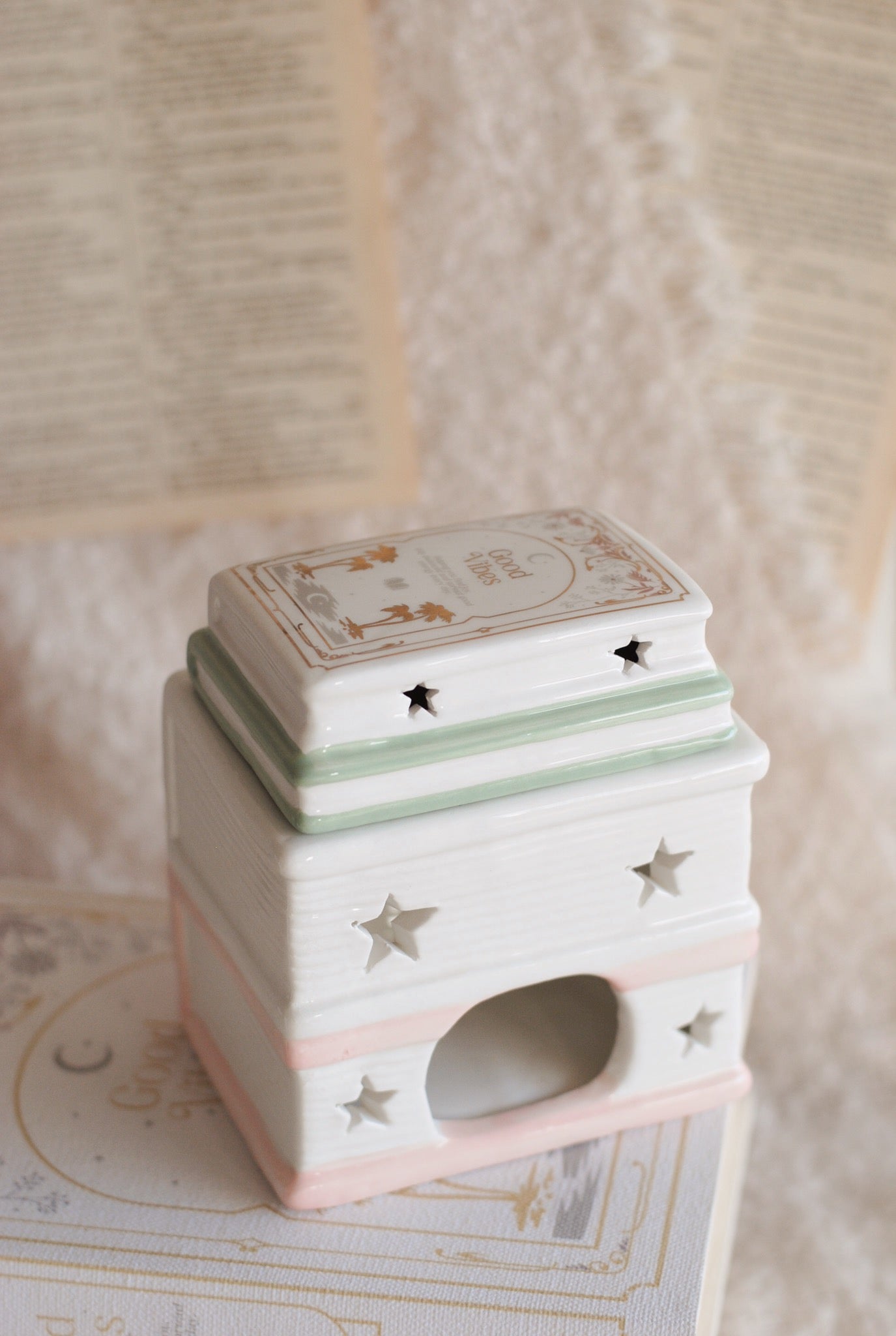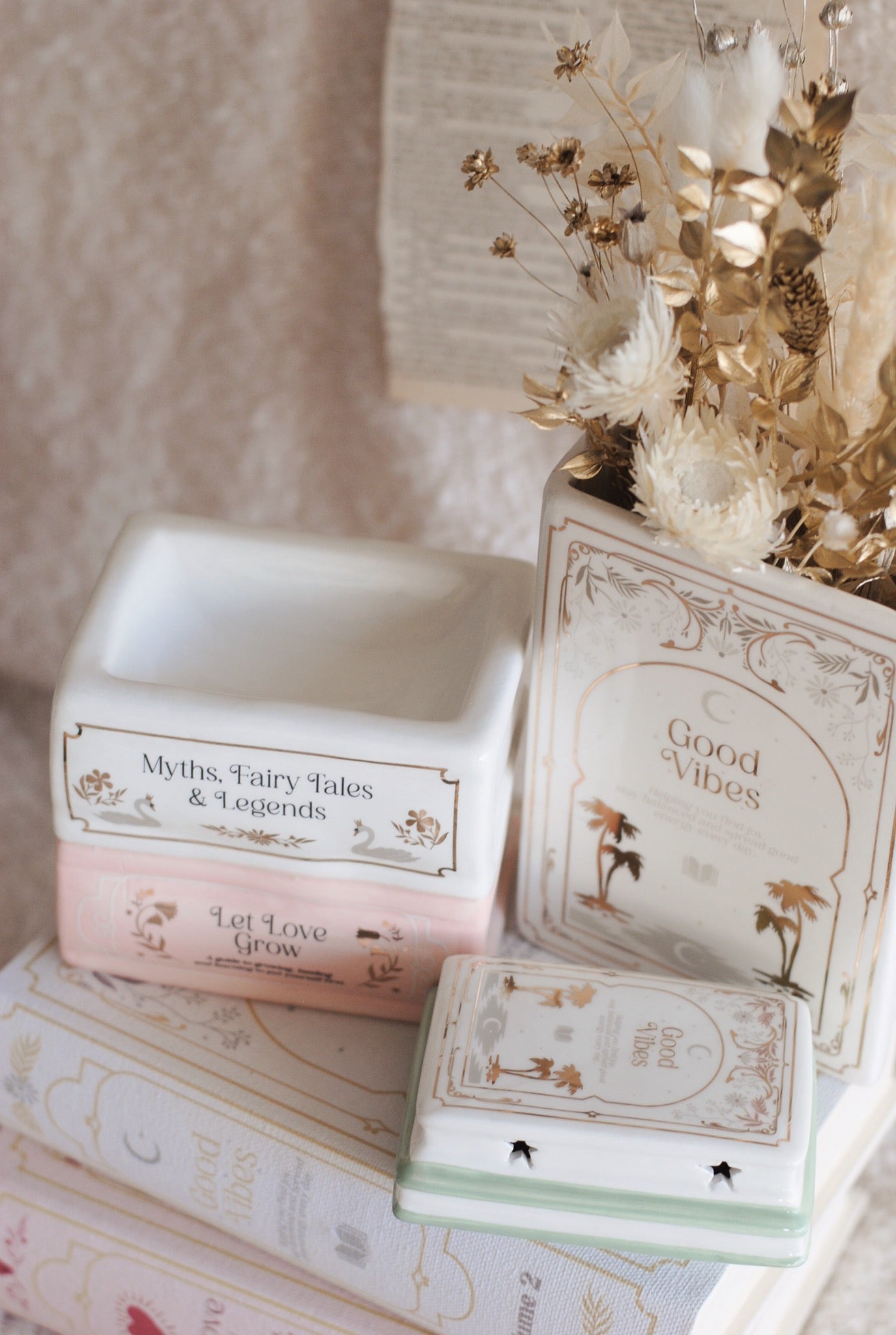 Boekenmagie met een heerlijke geur! Hoe ongelofelijk is deze oliebrander - net een stapel boeken! De brander is tot in de puntjes afgewerkt met goudfolie en prachtige details! Zodra je je favoriete geur toevoegt, vult de ruimte zich met warmte en sfeer, terwijl deze boekenstapel een knus hoekje siert! ♥️
