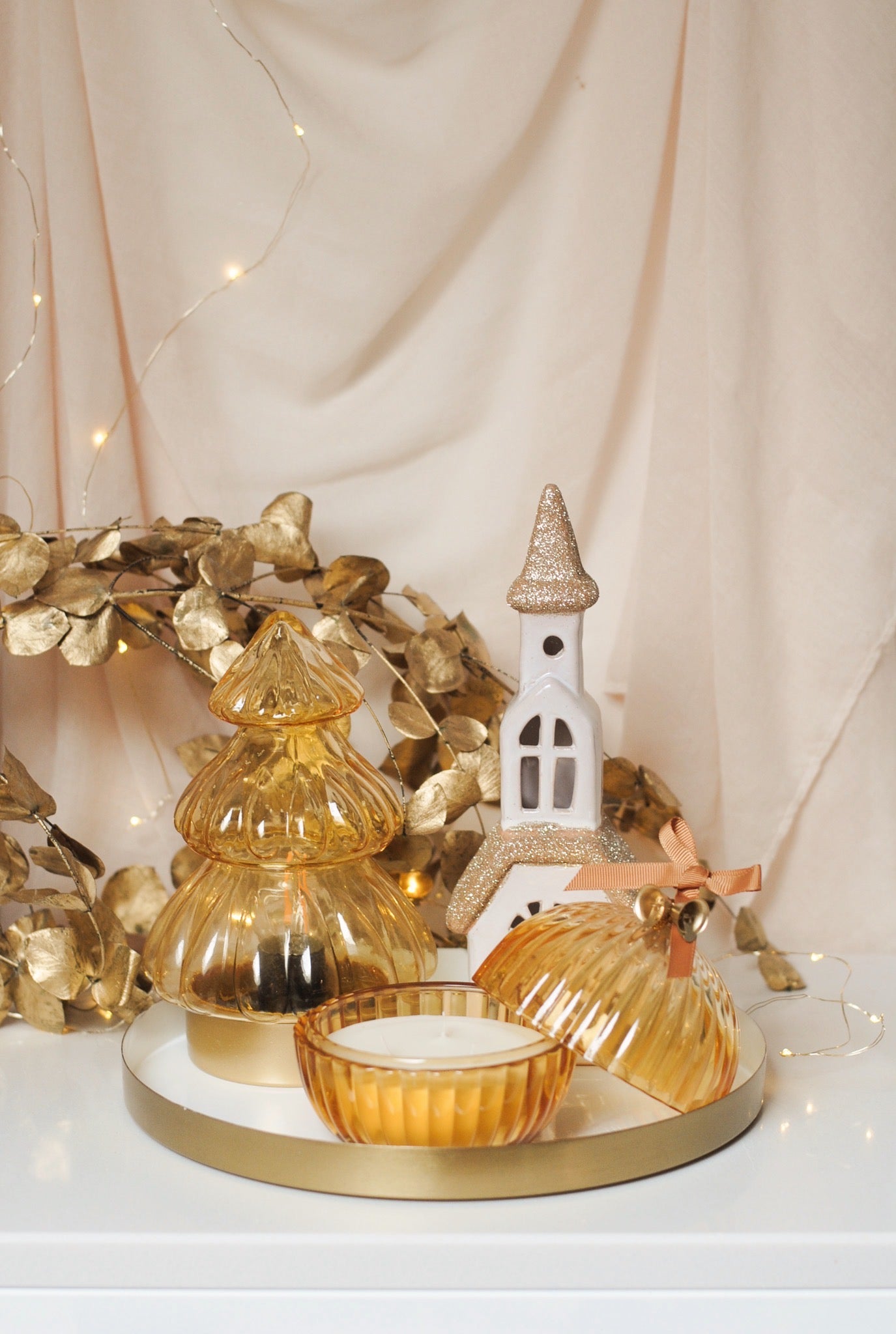 Deze mooie gouden kerstboom brengt direct cosy warmte in huis! Het zachte licht schijnt door het amberkleurige glas en creëert een gezellig wintergevoel, terwijl de handige timer zorgt dat je er zonder zorgen van kunt genieten! De boom werkt op batterijen en kan dus overal gezet worden, van de salontafel tot kast tot tussen de kerstdeco! 🎄✨