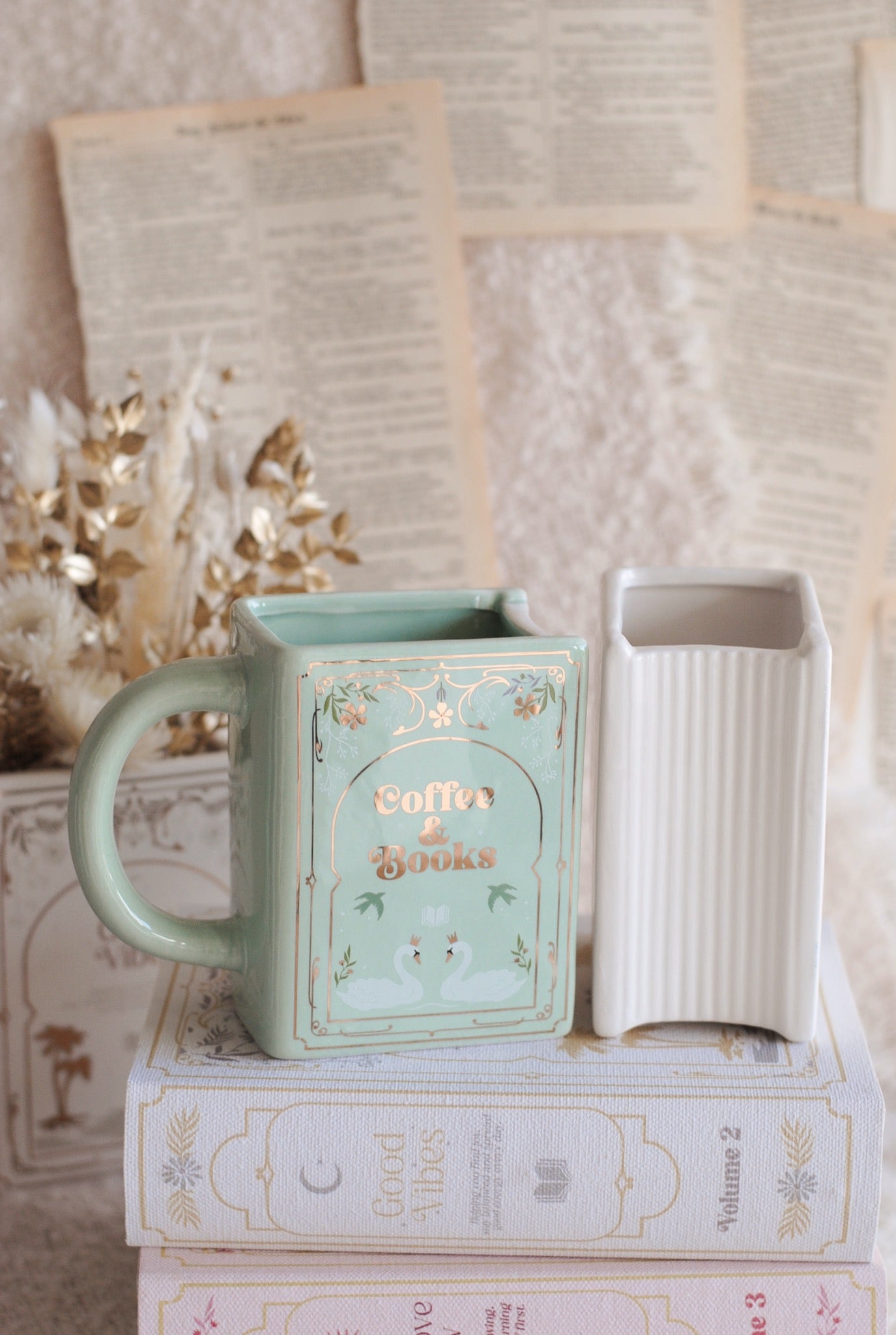 Begin je dag met een hoofdstuk én een koffieboost met deze pastelmuntgroene mok, vormgegeven als een prachtig boek! Met de tekst ‘Coffee & Books’ is het een echt hebbeding voor elke boekenliefhebber die graag z’n tbr combineert met een warm kopje koffie! Ze zijn ook heel erg leuk om als pennenpot te gebruiken! ✨