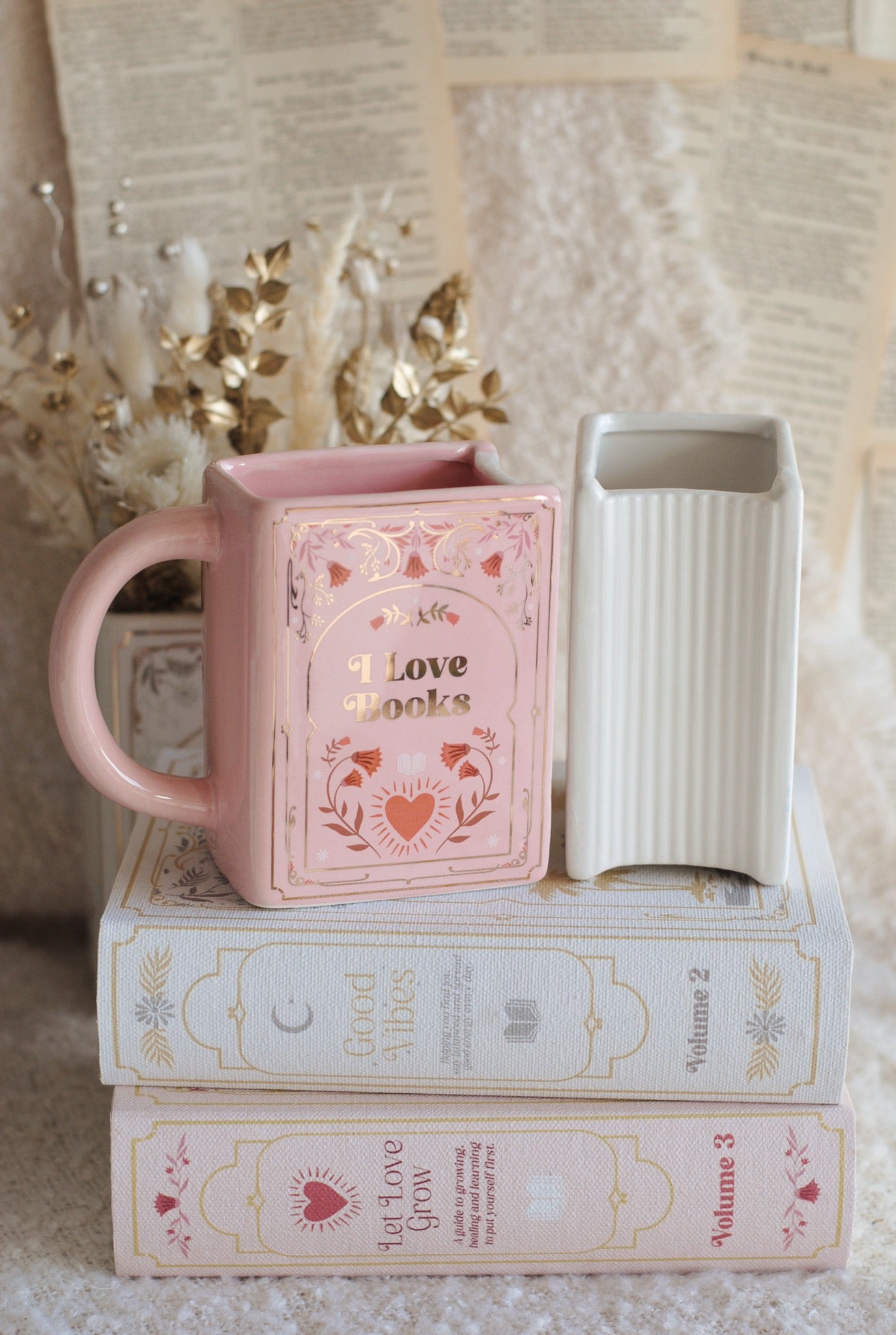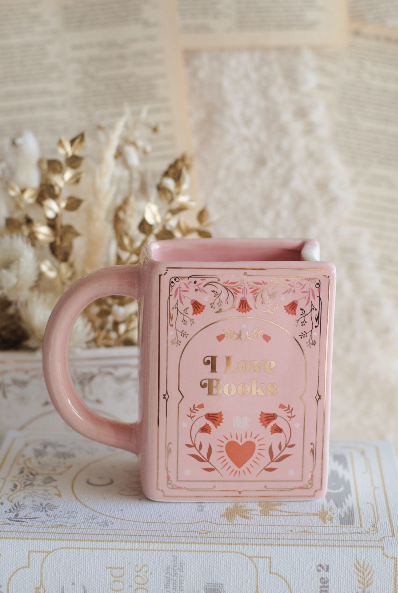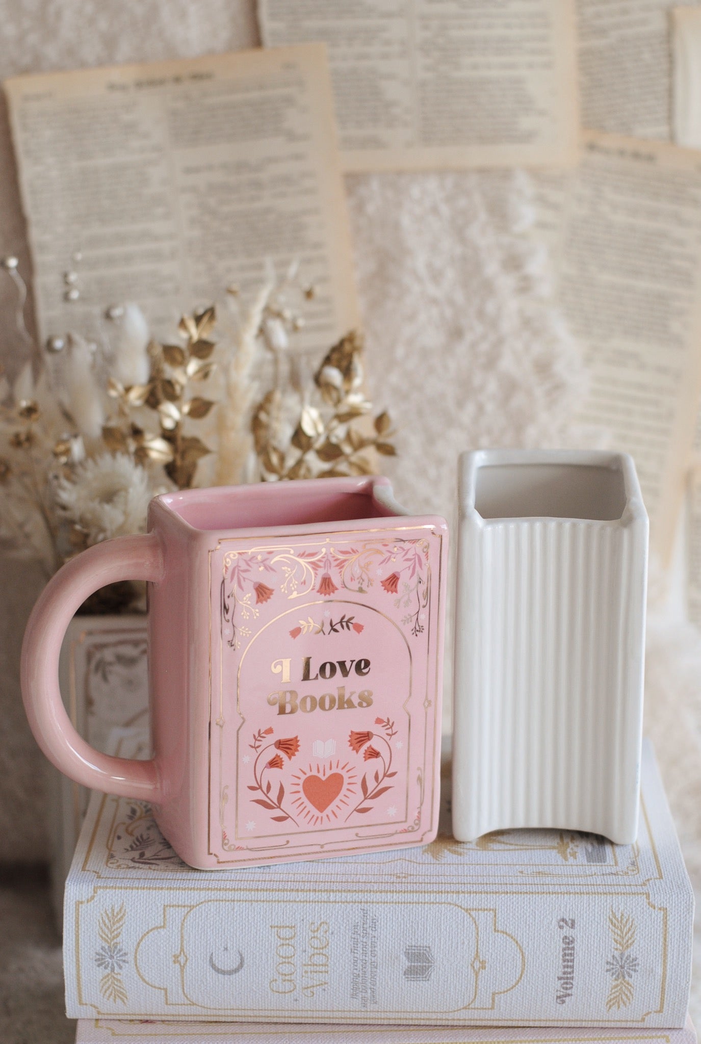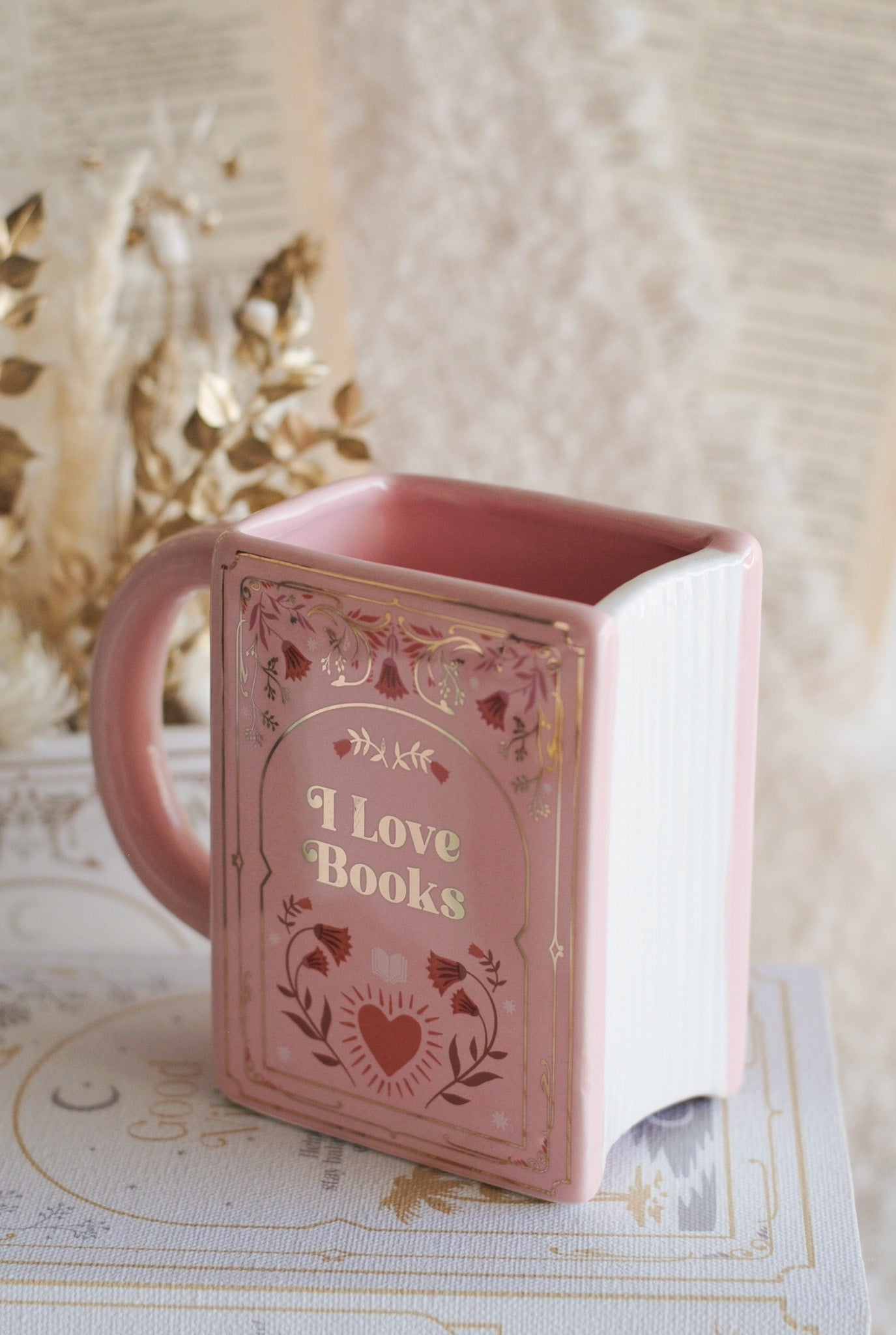 Begin je dag met een hoofdstuk én een warme kop koffie of thee met deze roze mok, vormgegeven als een prachtig boek! Met de tekst ‘I love books’ is het een echt hebbeding voor elke boekenliefhebber die graag z’n tbr combineert met een warm kopje koffie! Ze zijn ook heel erg leuk om als pennenpot te gebruiken! ✨