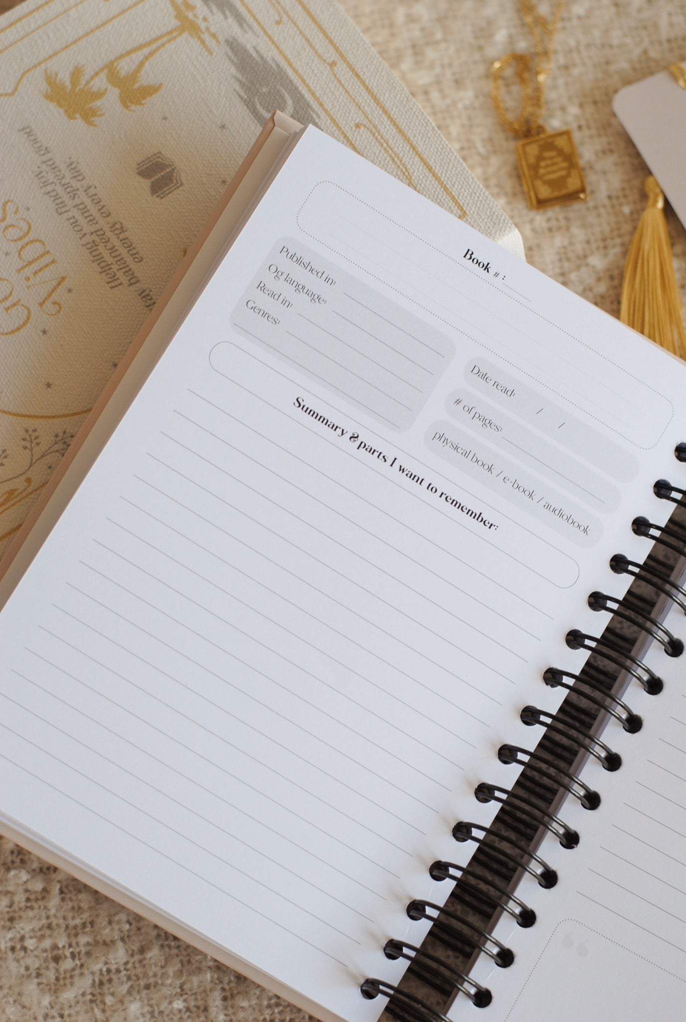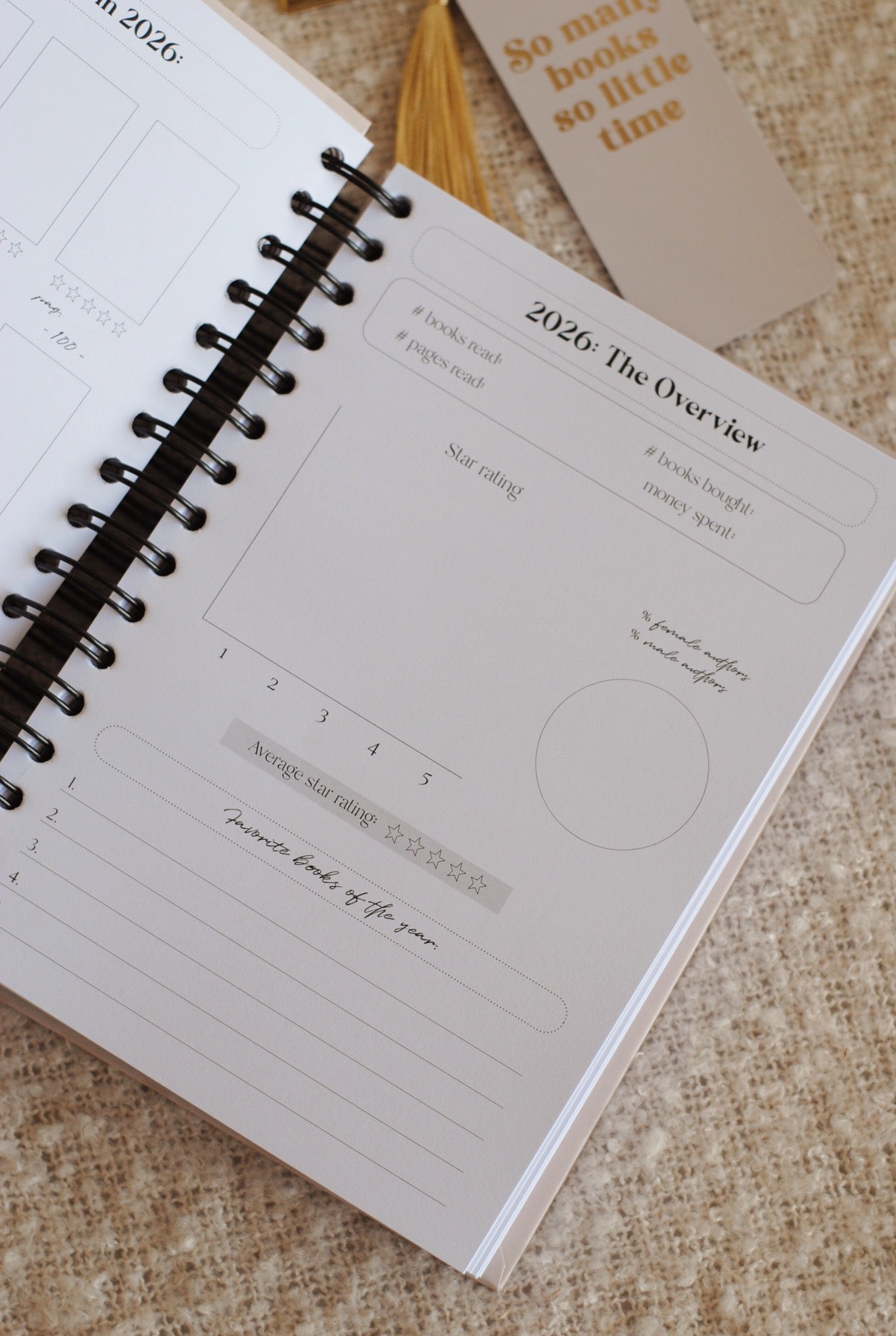 (Tip voor wie langer dan een jaar met het boek wil doen: vul de trackers een jaar in en na dit jaar kan je ze gewoon eruit halen. Dan hou je het 100 boeken overzicht over, de review pagina's en de woordenlijst en heb je er nog jaren plezier van tot je de 108 boeken gehaald hebt!)