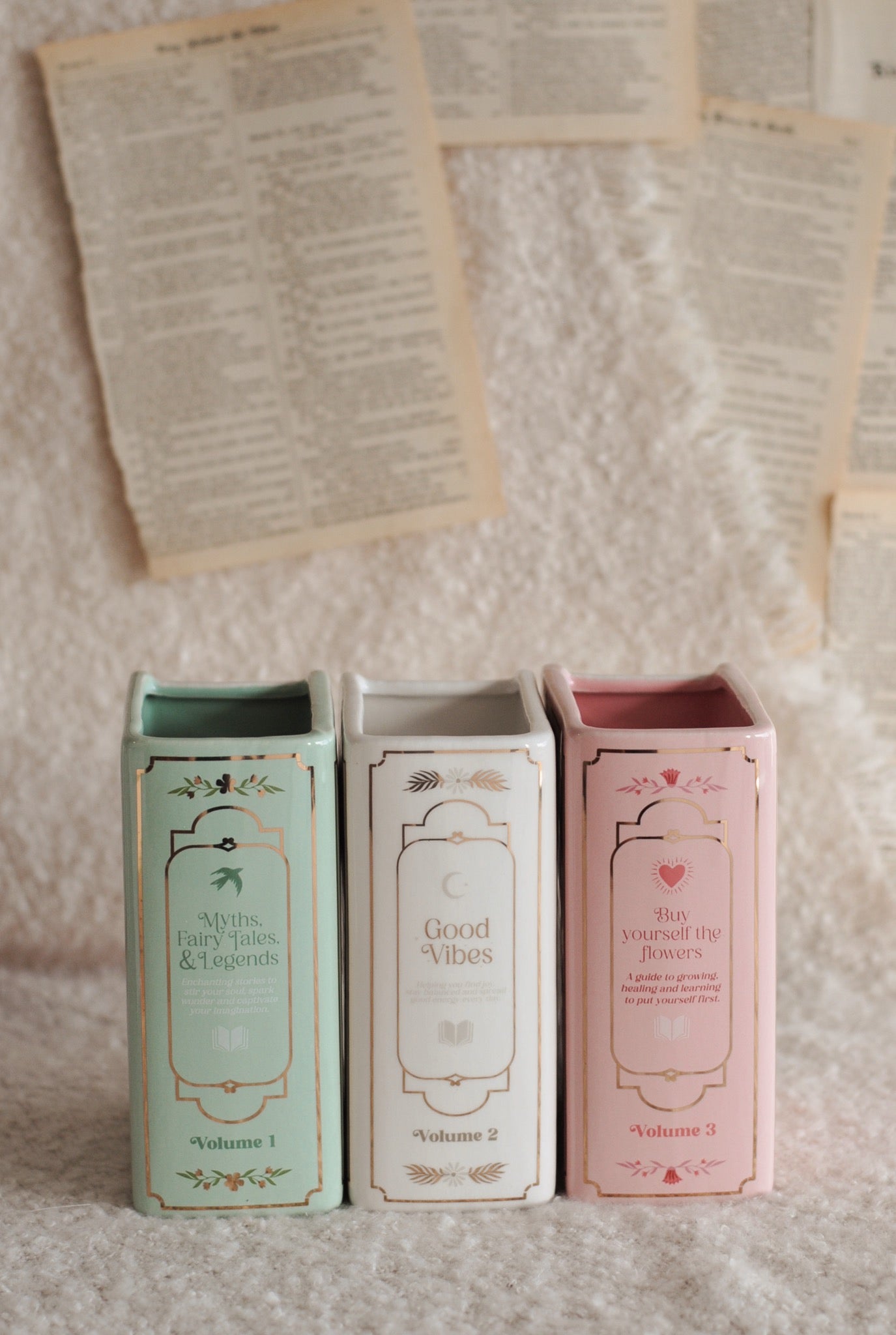 Geef je interieur een extra literair tintje met deze prachtige vaas, vormgegeven als een rechtopstaand boek! Wit met gouden details, "Good Vibes" - wat een dreamy eyecatcher in je interieur! ✨
