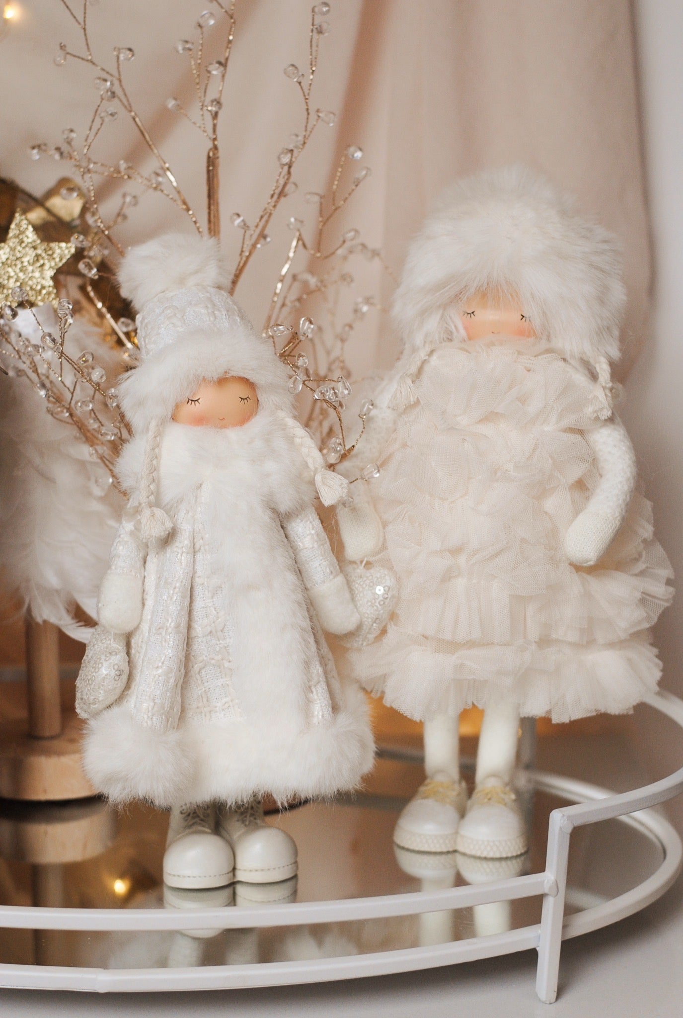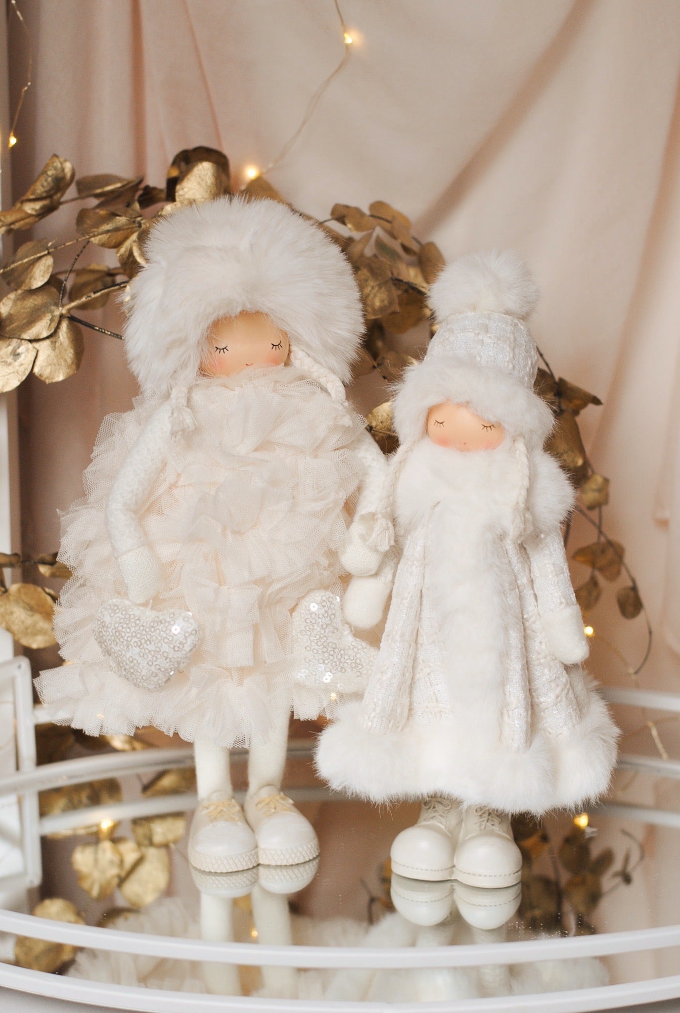 Dit lieve wintermeisje straalt zachtheid en elegantie uit. Haar prachtige outfit - rijk aan fijne details en prachtige stoffen - geeft haar een verfijnde, dreamy uitstraling! De twee zusjes vormen samen een prachtig duo, een kleine en grote zus! Elk popje is met oog voor detail afgewerkt. ✨
