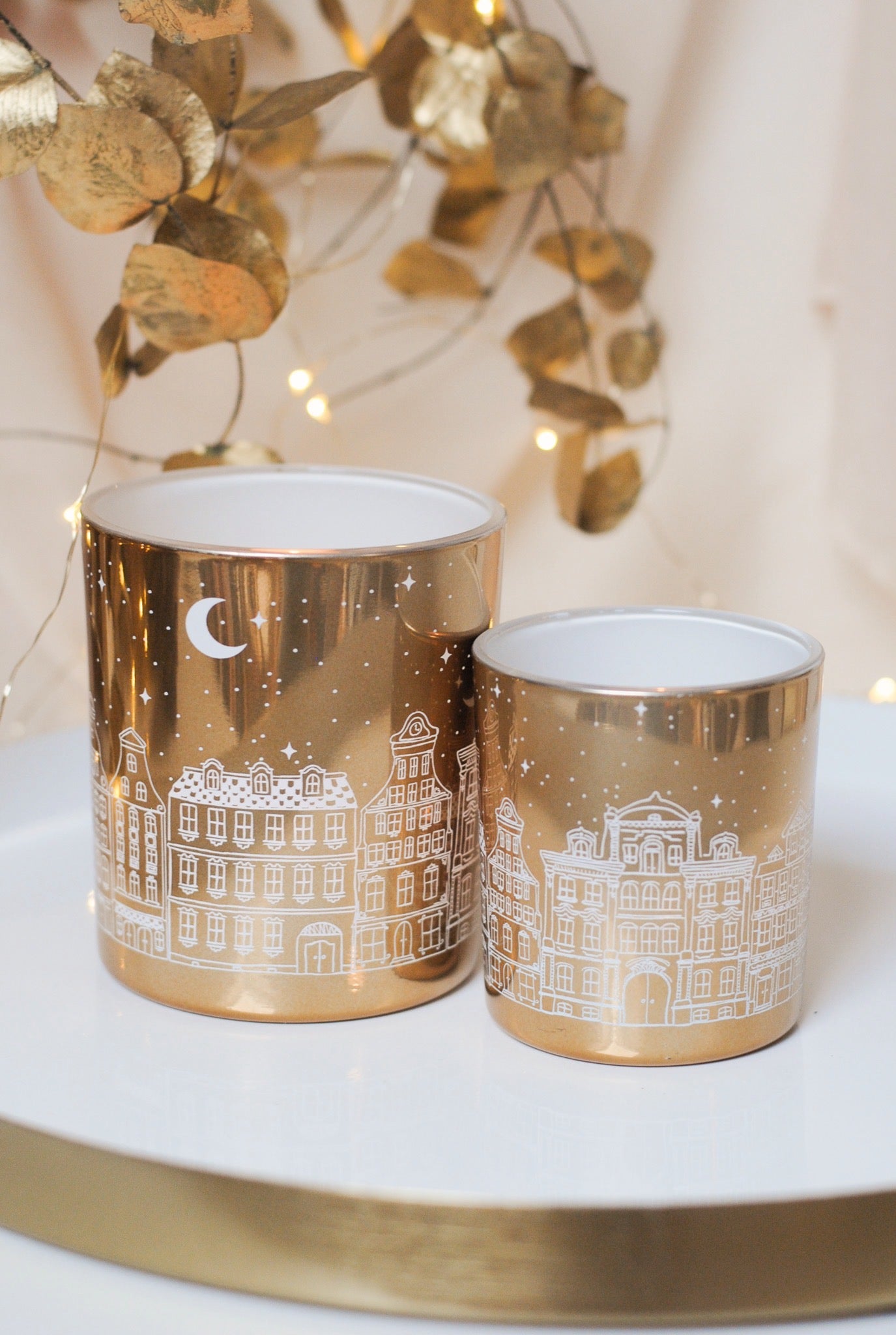 Er komt een magisch dorpje onder de maan en sterrenhemel tot leven.. 🌙✨ Deze gouden theelichthouder met huisjes, maan en sterren schijnt prachtig en brengt een instant cosy feeling in huis!