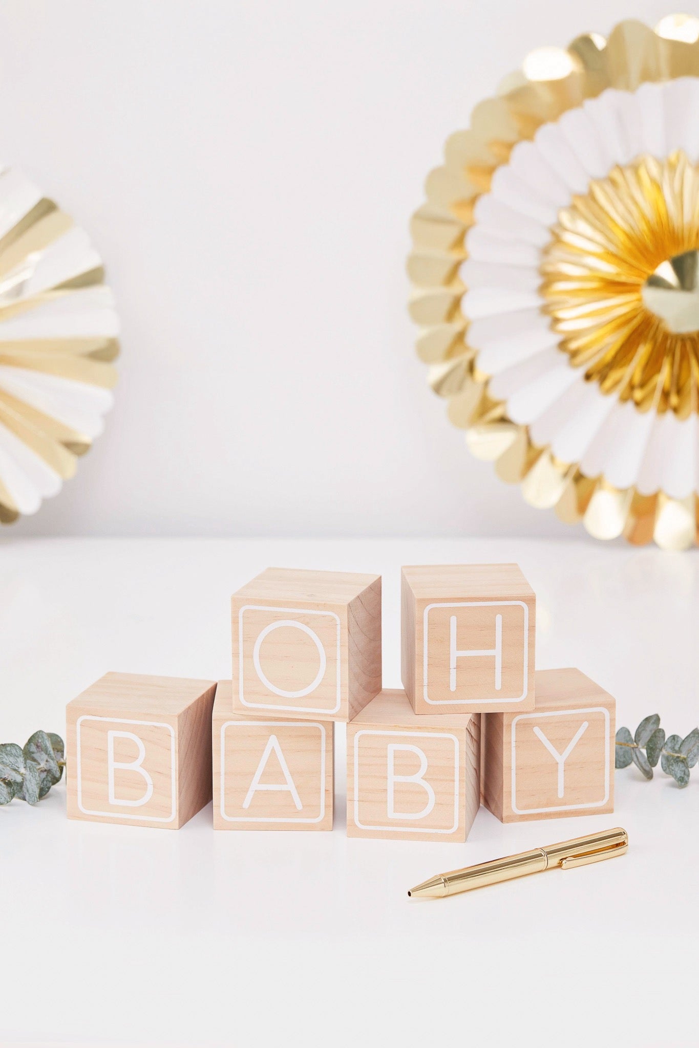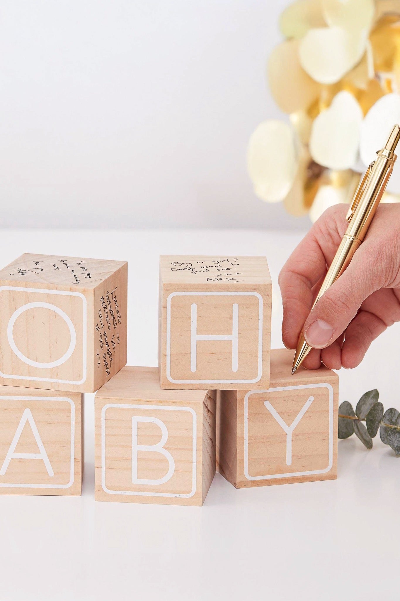Verras de toekomstige mama met dit superoriginele gastenboek, dat zó leuk is dat het daarna een pronkstuk in de babykamer wordt! ♥️ Deze set van zes houten blokken vormt samen de woorden 'Oh Baby' in witte letters aan de voorkant. De andere zijden zijn blanco, zodat familie en vrienden er hun liefste wensen, grappige boodschappen of wijze woorden op kunnen schrijven. ✨