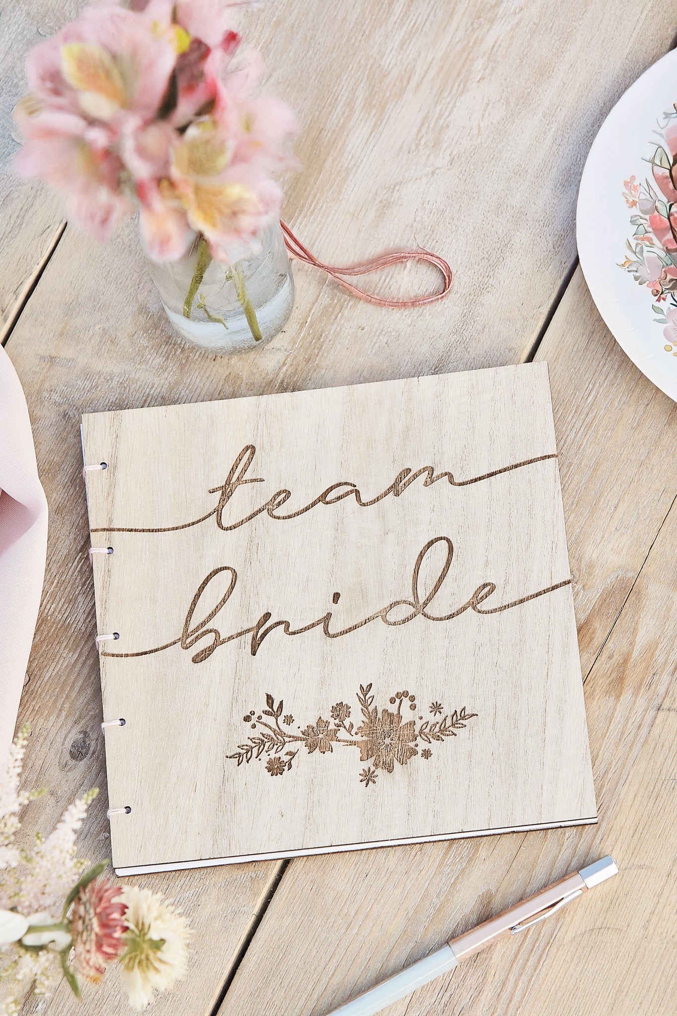 Maak een blijvende herinnering voor de bride-to-be met dit prachtige houten gastenboek! Laat familie, vrienden en bruidsmeisjes er grappige verhalen, lieve boodschappen en wijze woorden in achterlaten. ♥️ Zo kan de toekomstige bruid later nog eens heerlijk terugbladeren naar alle mooie momenten van haar vrijgezellenfeest. ✨