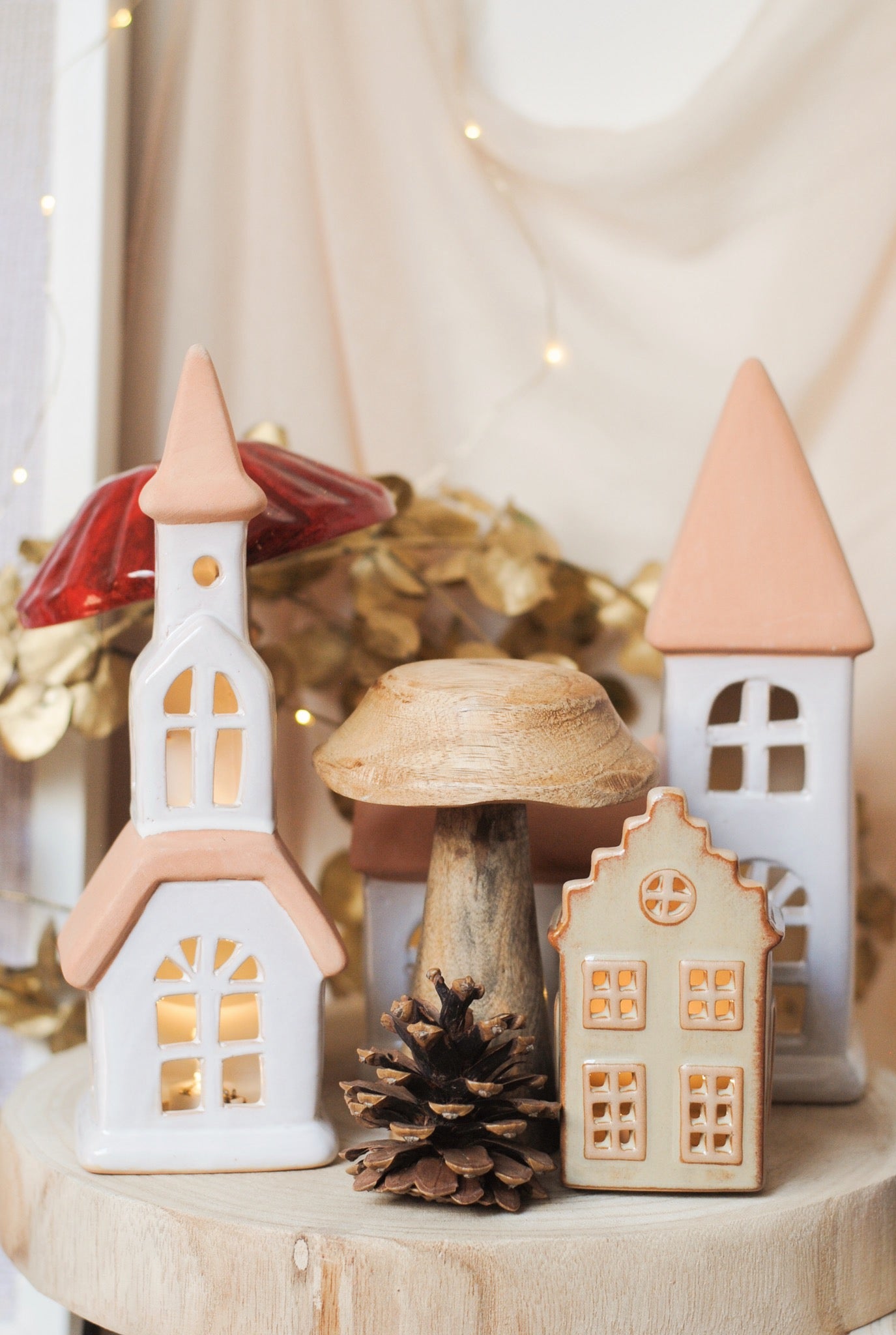 Deze cosy huizen brengen instant gezelligheid! Het licht-terracotta dak geeft een gezellige toets, terwijl de vele raampjes het licht van het LED lampje zachtjes naar buiten laten schijnen en een magische sfeer creëren. ♥️ Wauw. Ze passen ook perfect met de andere huisjes, zo maak je een knus herfstdorp! ✨