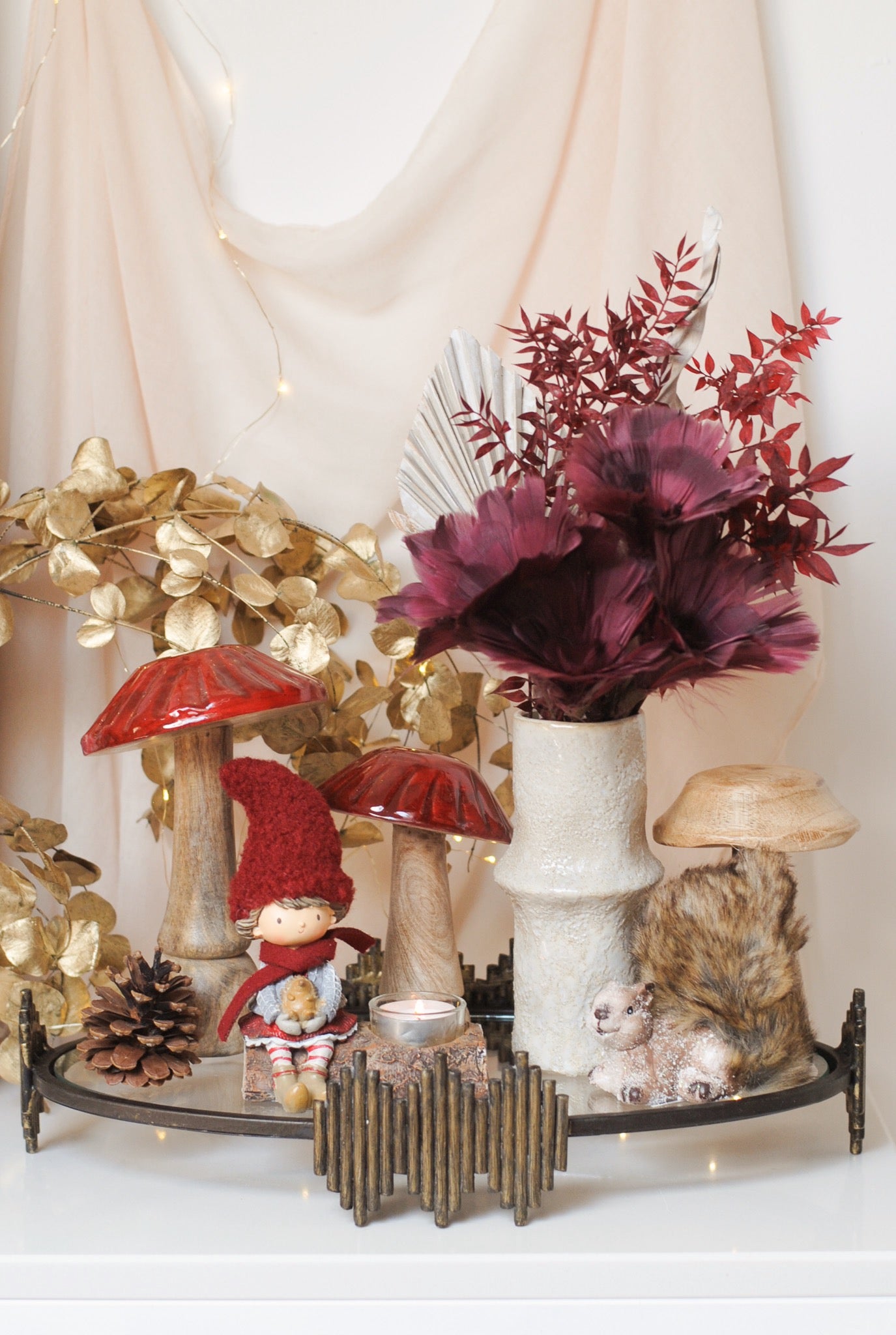 Deze houten paddenstoel brengt woodsy gezelligheid naar binnen! Dankzij de natuurlijke houtnerf heeft elk exemplaar zijn eigen unieke uitstraling. Perfect om je herfsttafel, salontafel of kast een warme, woodsy toets te geven! ✨