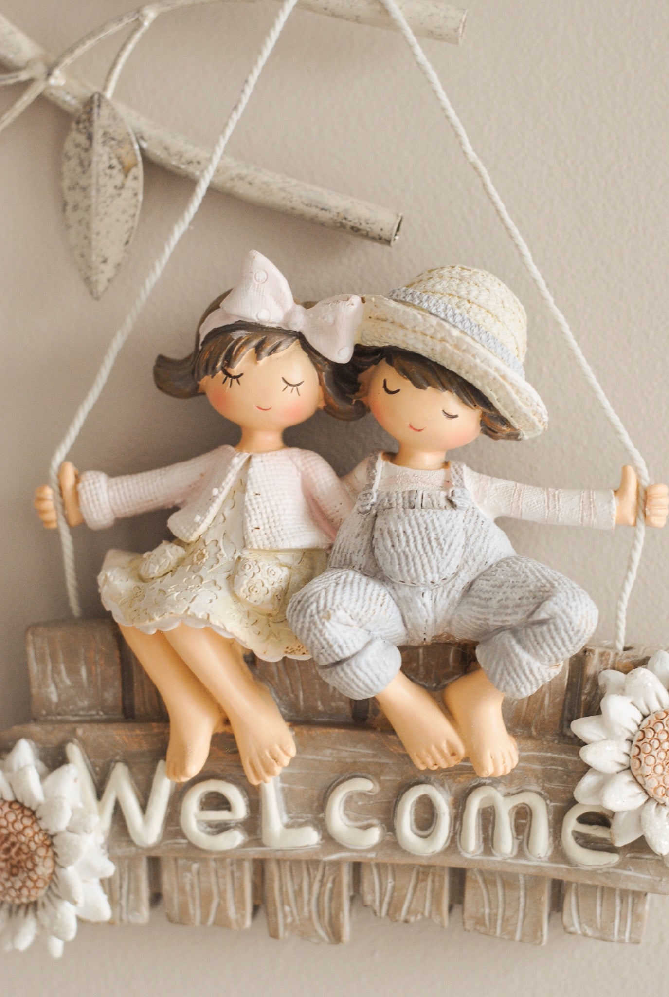 Deze welcome hanger is versierd met twee lieve kindjes in het midden en brengt meteen een vrolijke lente sfeer in je interieur! Perfect voor de deur, hal of bij je favoriete hoekje in huis. 🌷